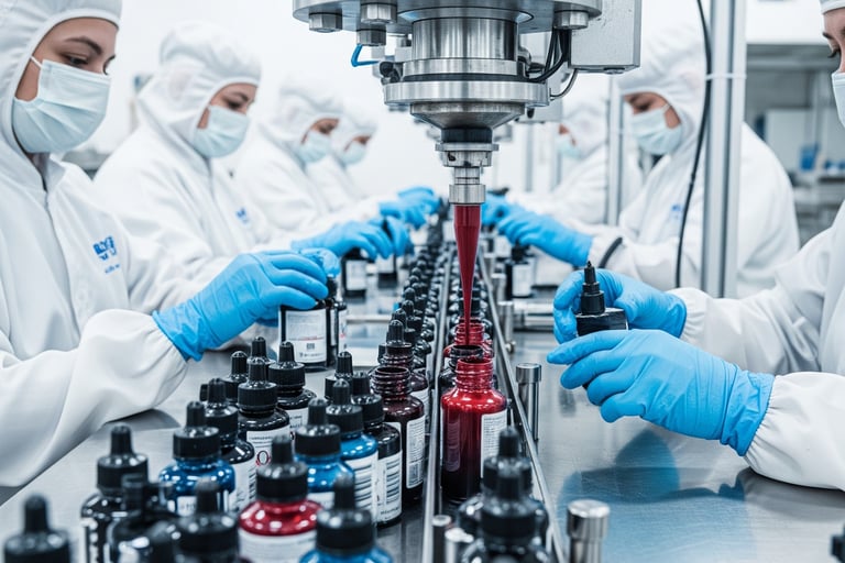 El embotellado de tinta artística es la fase final tras la producción del color. Se realiza en un ambiente controlado y estéril para evitar contaminación. La tinta, ya refinada y homogénea, es transferida desde grandes tanques de almacenamiento a líneas de llenado automatizadas. Estas máquinas dosifican la cantidad precisa en cada envase, ya sean botes o frascos, garantizando la uniformidad. Finalmente, los envases son sellados herméticamente para preservar la frescura y calidad de la tinta hasta llegar al artista.